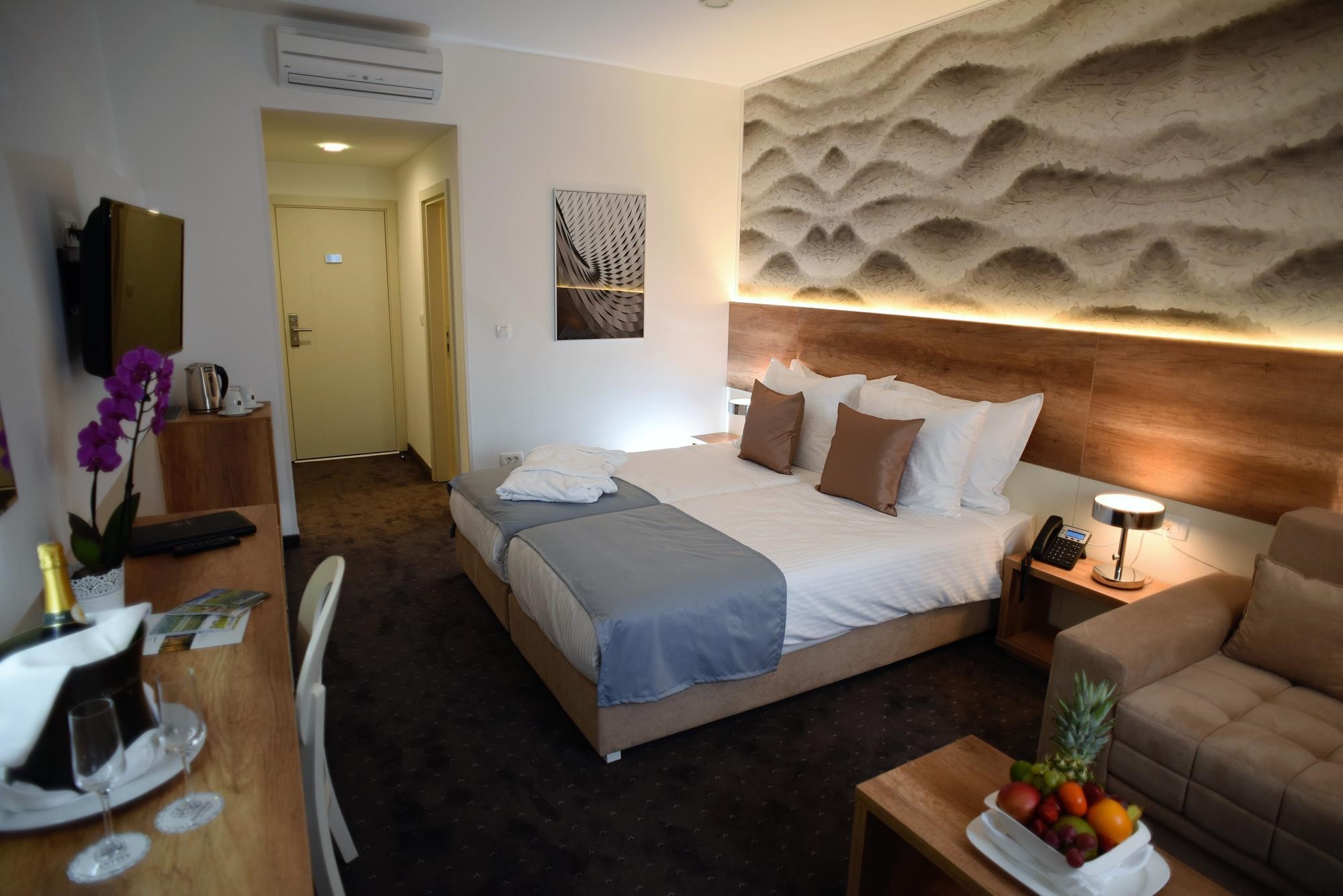Nude širok spektar smještajnih opcija, a svaka soba je moderno opremljena te sadrži besplatan Wi-Fi, klima uređaj, LCD televizor i mini bar, osiguravajući udobnost i praktičnost našim gostima. Recepcija radi 24 sata dnevno, što znači da su uvijek dostupni za sve vaše potrebe i upite, a imaju osigurani besplatan parking pod videonadzorom. Punionicu za električna vozila možete pronaći na unutarnjem parkingu hotela, a korištenje je besplatno za sve goste.