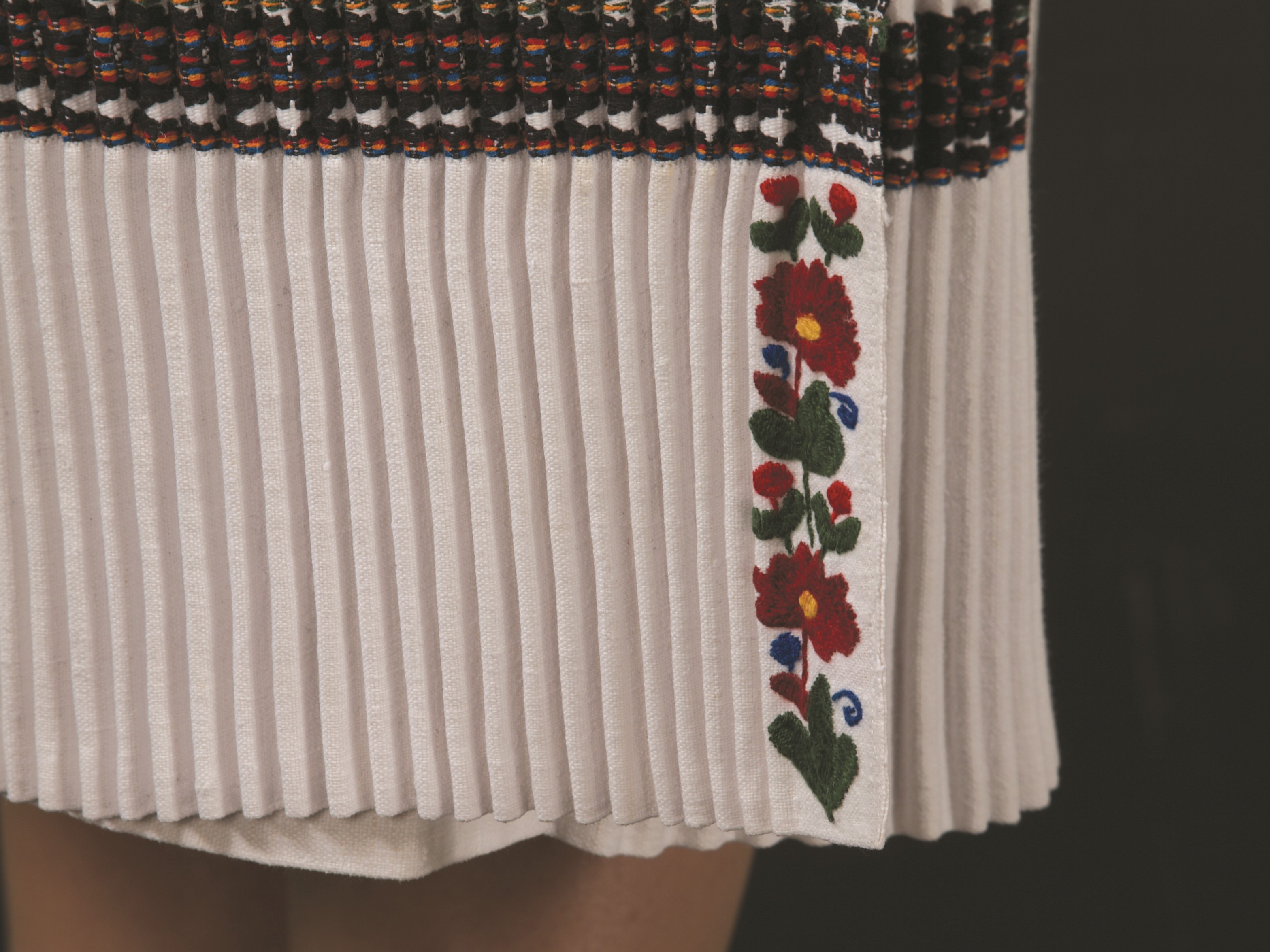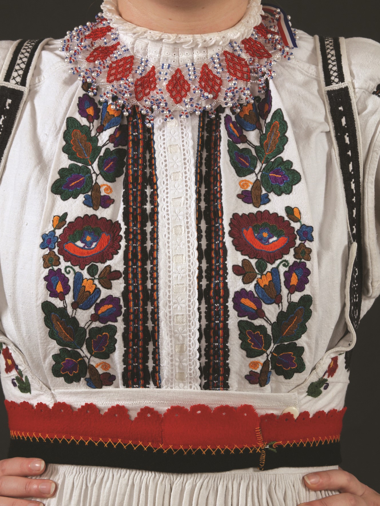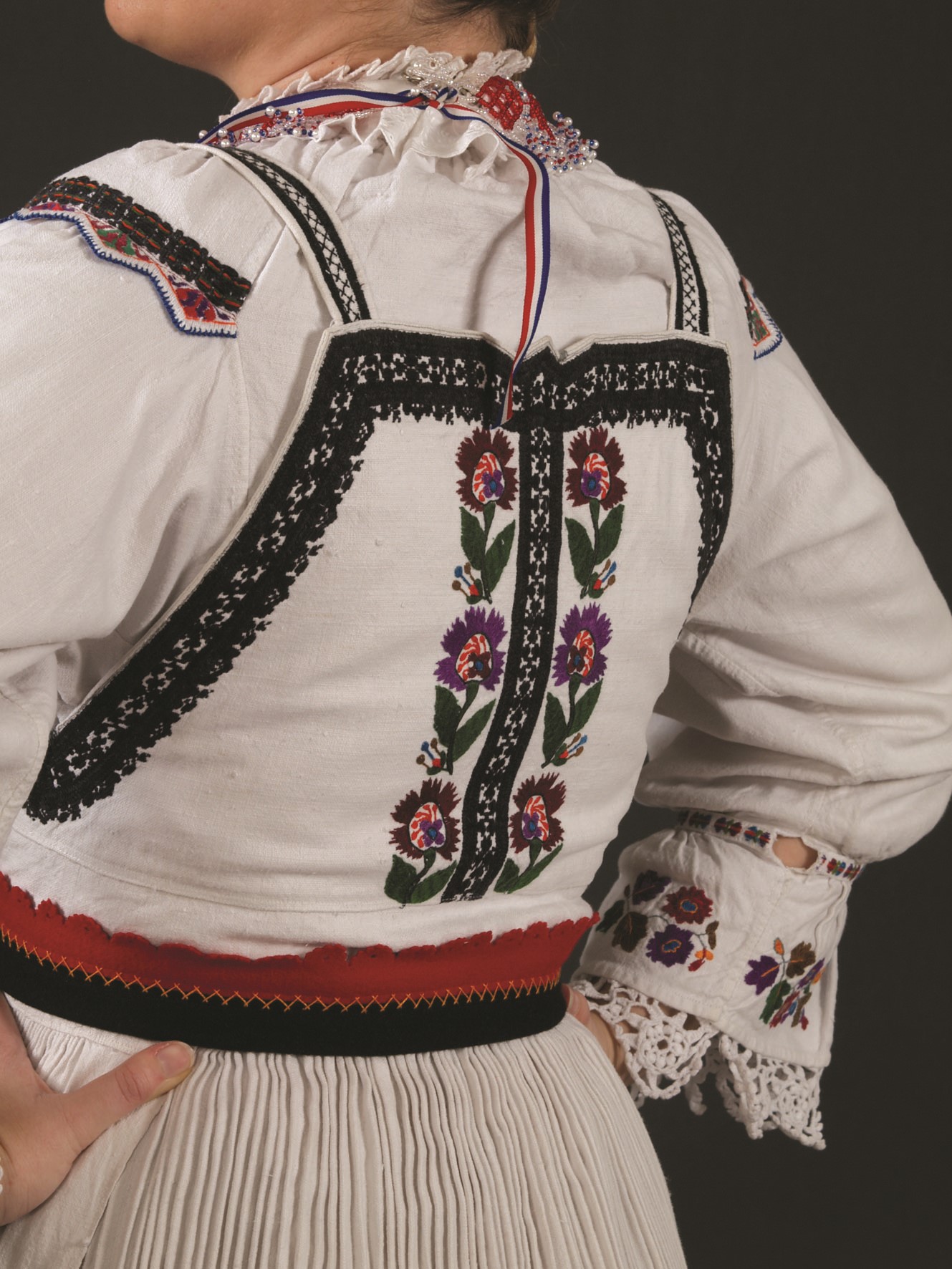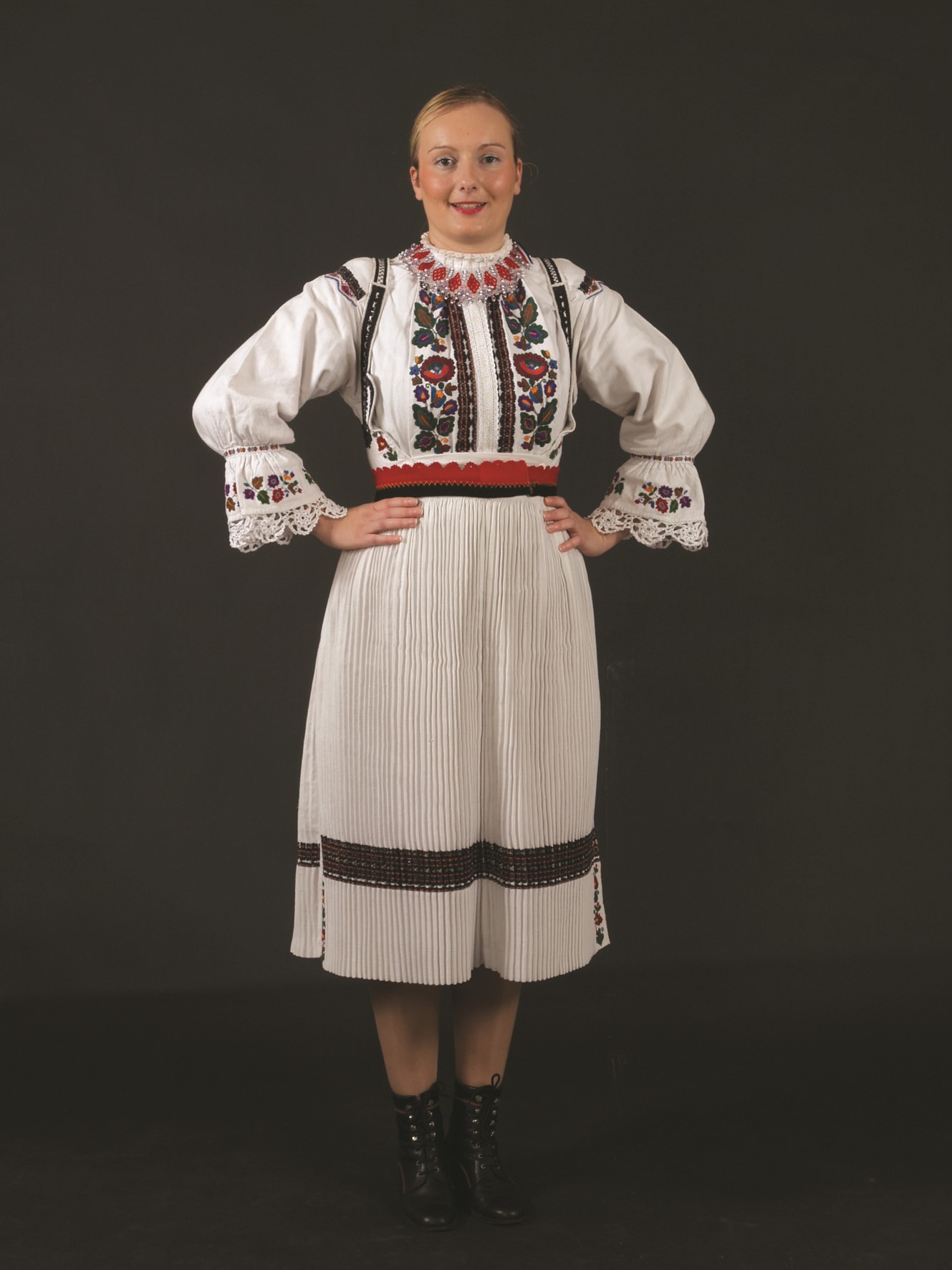 koncima. Modrec je s prednje strane jako izrezan, a po sredini otvoren. Suknja je rubača, obično bez posebnih ornamenata. Sastoji se od prednje ravne pole i zadnjih dviju poli sitno nabranih. Prednja pola je u gornjem dijelu otvorena. Fertun je pregača izrađena od dvije pole na struku, sitno nabrane i uhvaćene ošvicom na koju se nastavljaju krakovi.