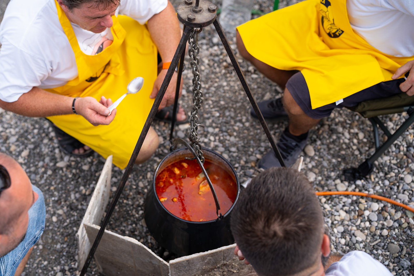 14:00 – 16:00 Kuhanje fiša natjecateljskih ekipa i kuhanje fiša u velikom kotlu od 600 litara (najvećem u Hrvatskoj!)