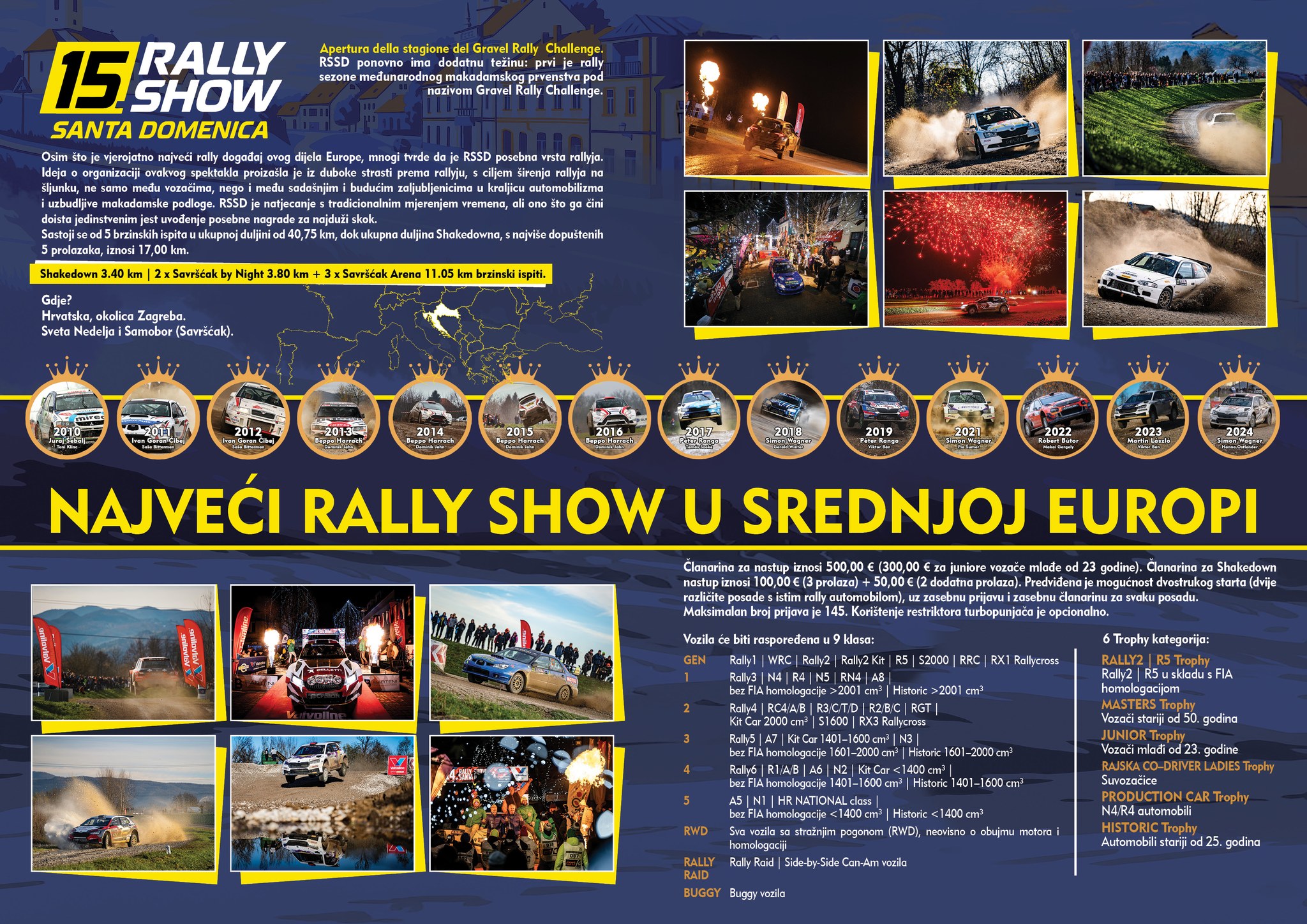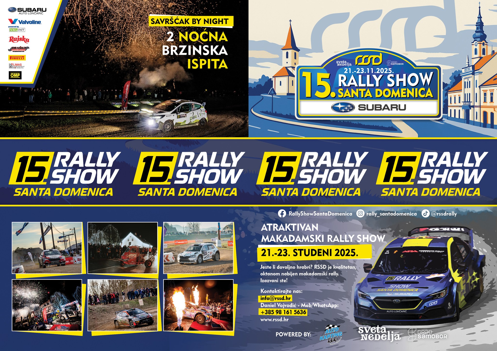 Petnaesto izdanje Rally Showa Santa Domenica powered by Subaru održat će se od 21. do 23. studenoga 2025. godine na već svima dobro poznatim lokacijama u Svetoj Nedelji i Savršćaku kraj Samobora.