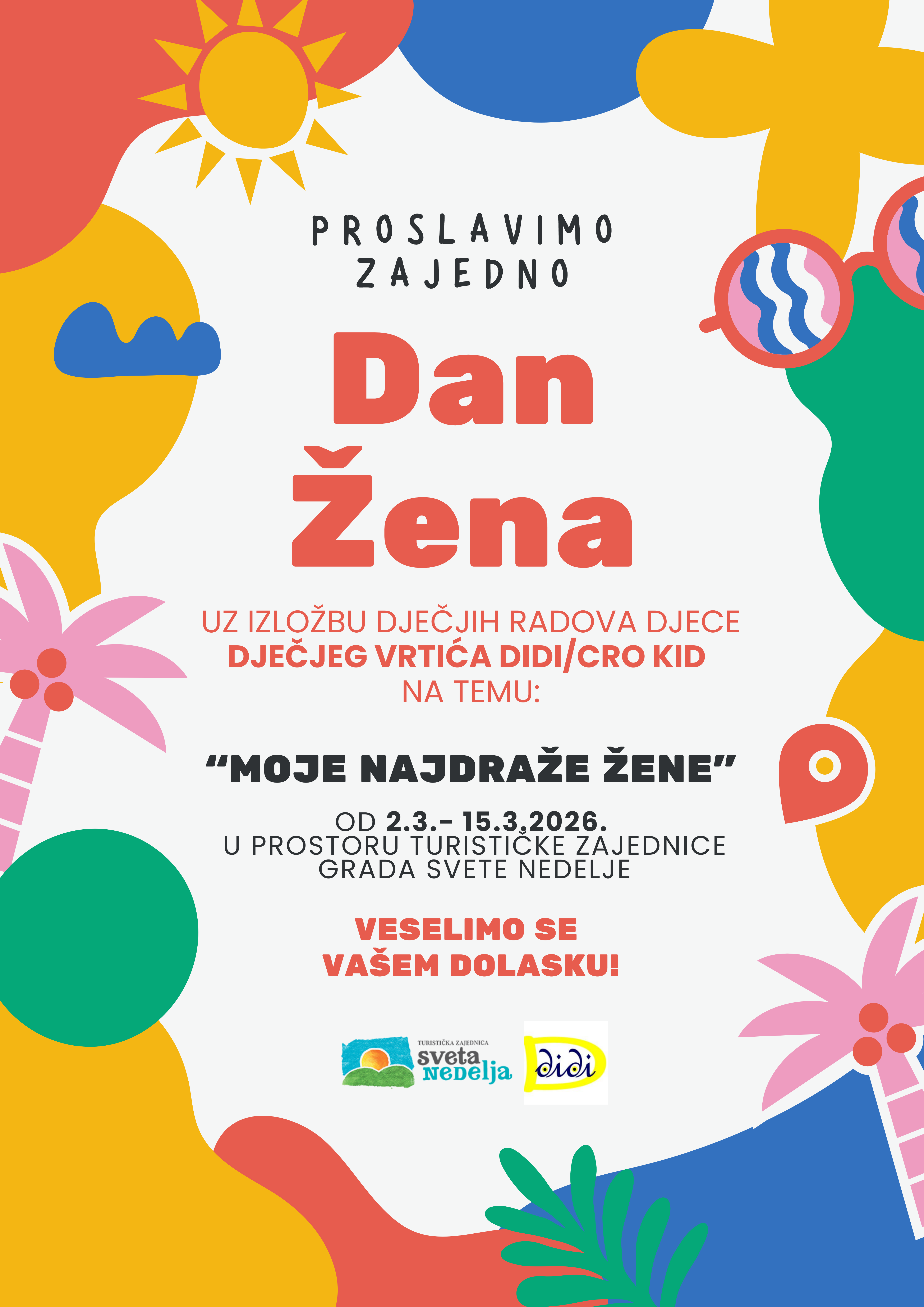 Izložba dječjih radova pod nazivom „Moje najdraže žene“, održat će se od 2. do 15. ožujka 2026. godine u prostoru Turističke zajednice grada Svete Nedelje.