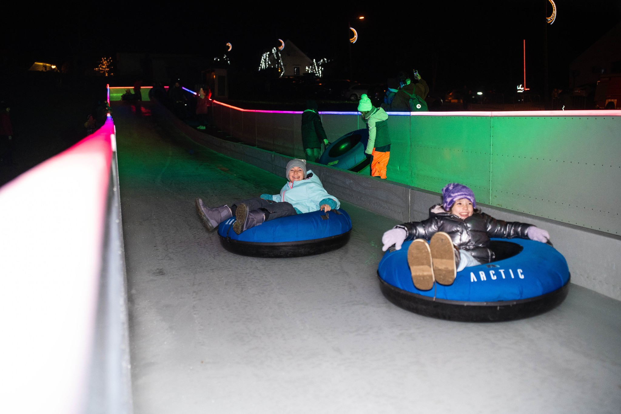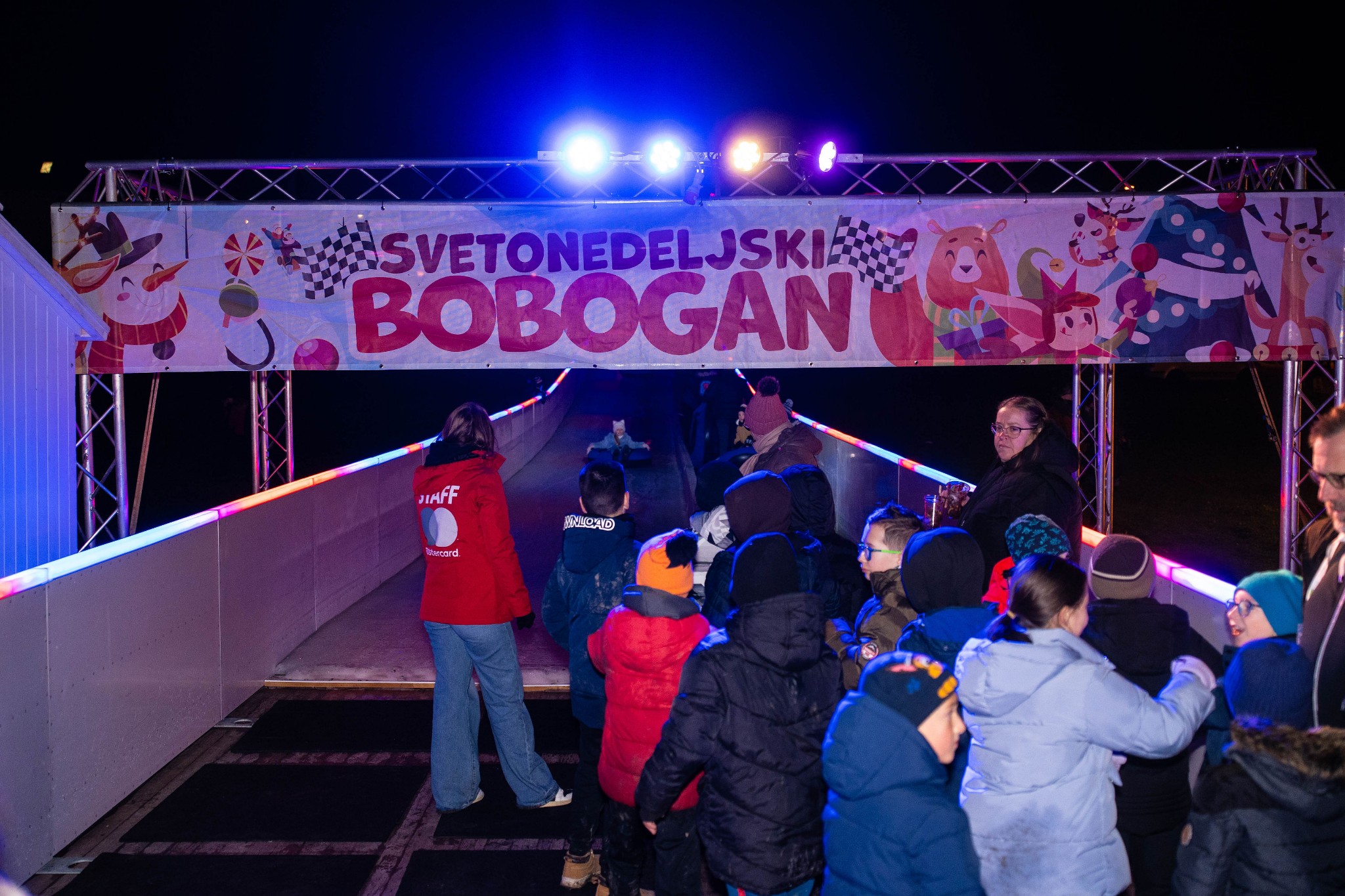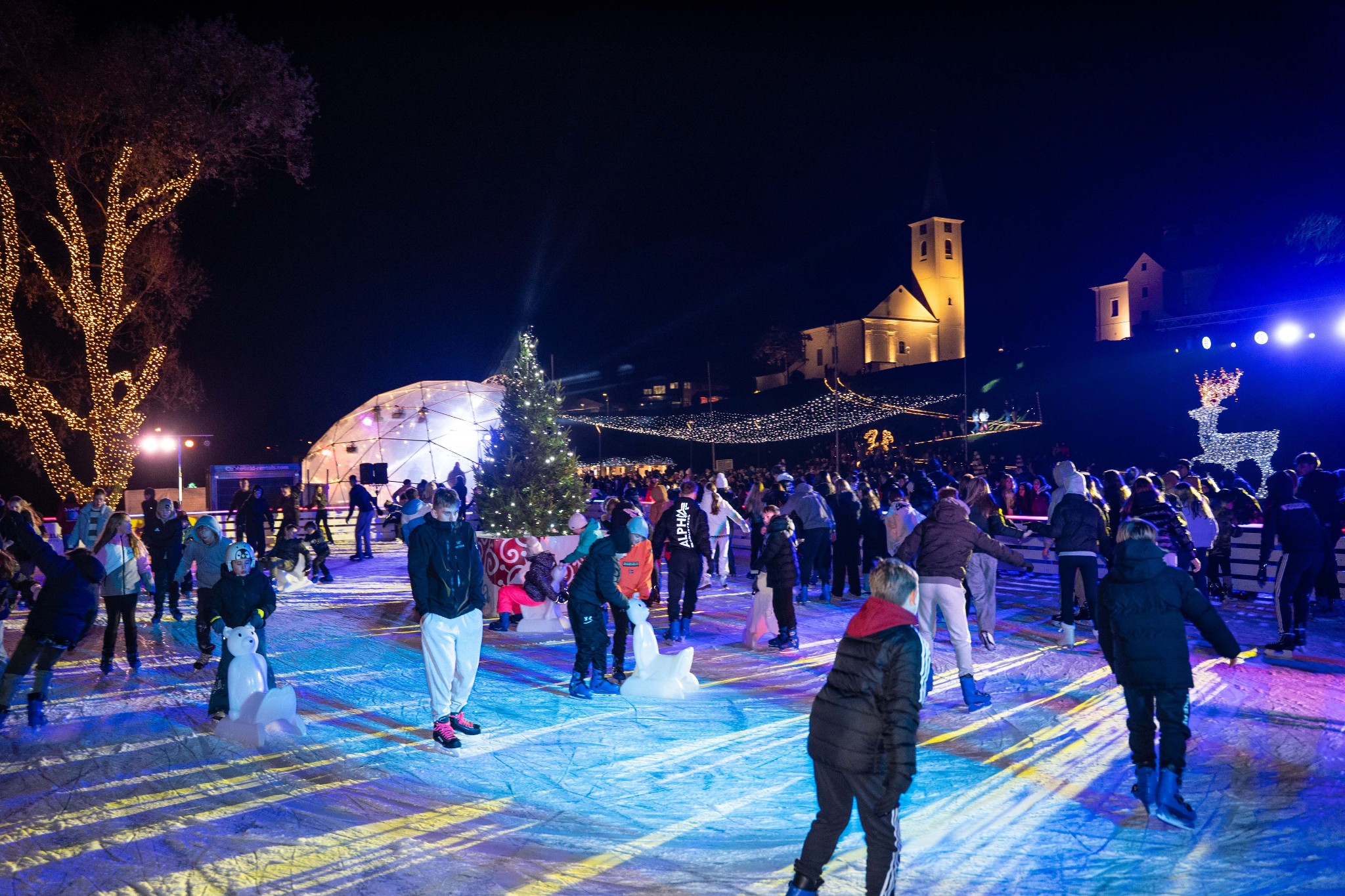 Posjetitelji su sinoć uživali i u besplatnom klizanju i spuštanju niz ledeni tobogan.