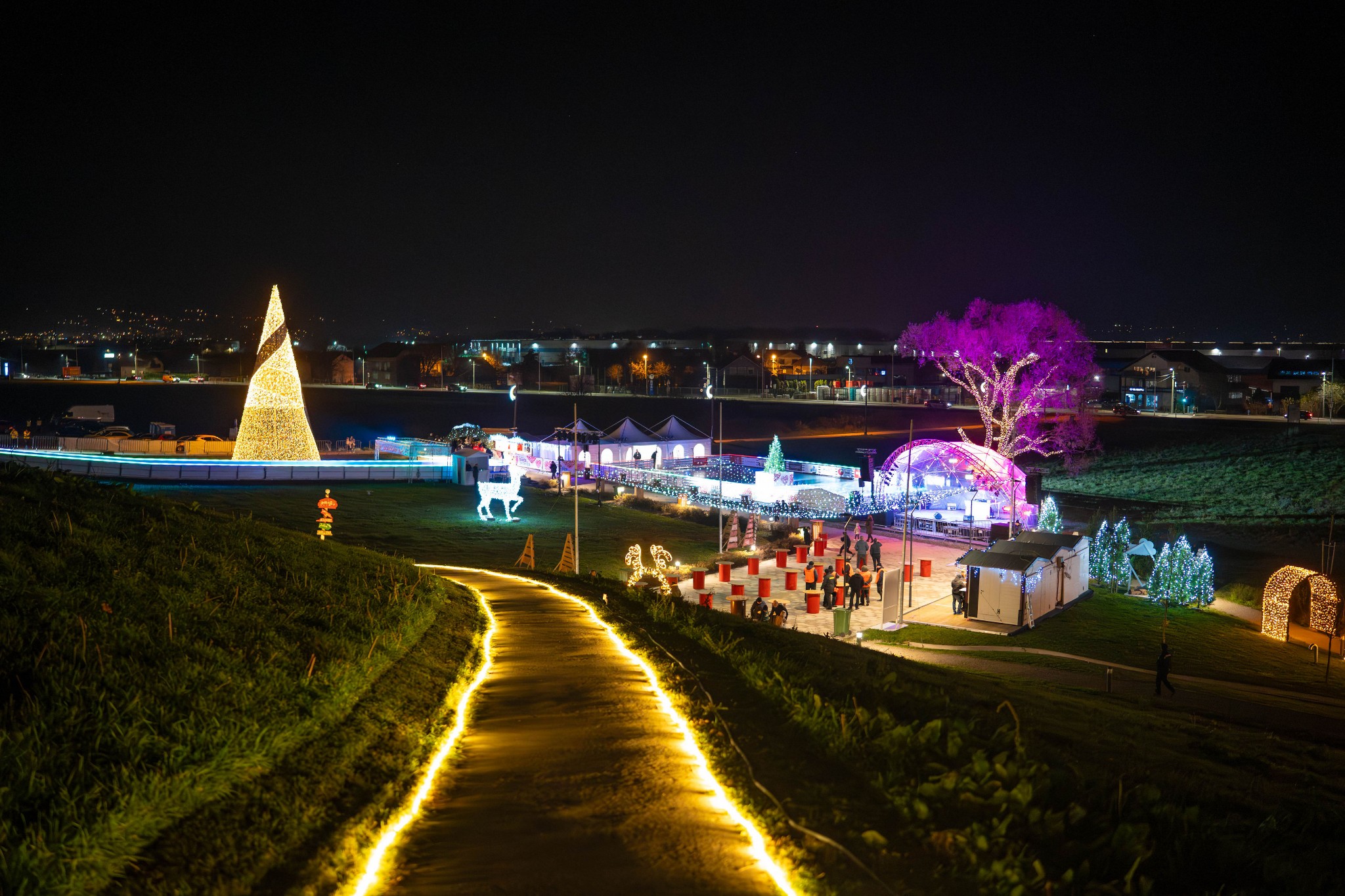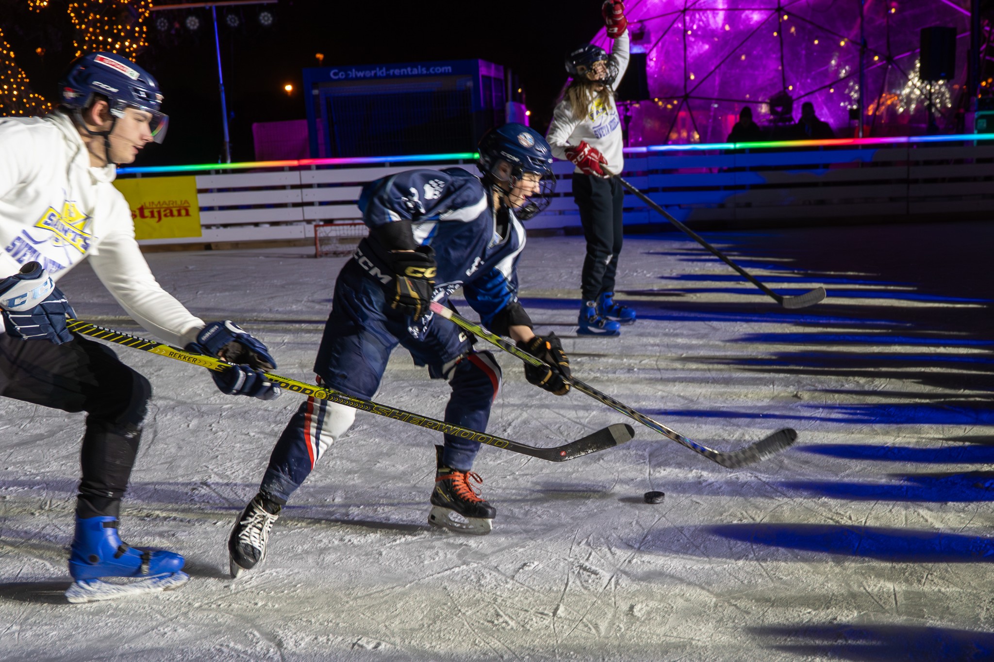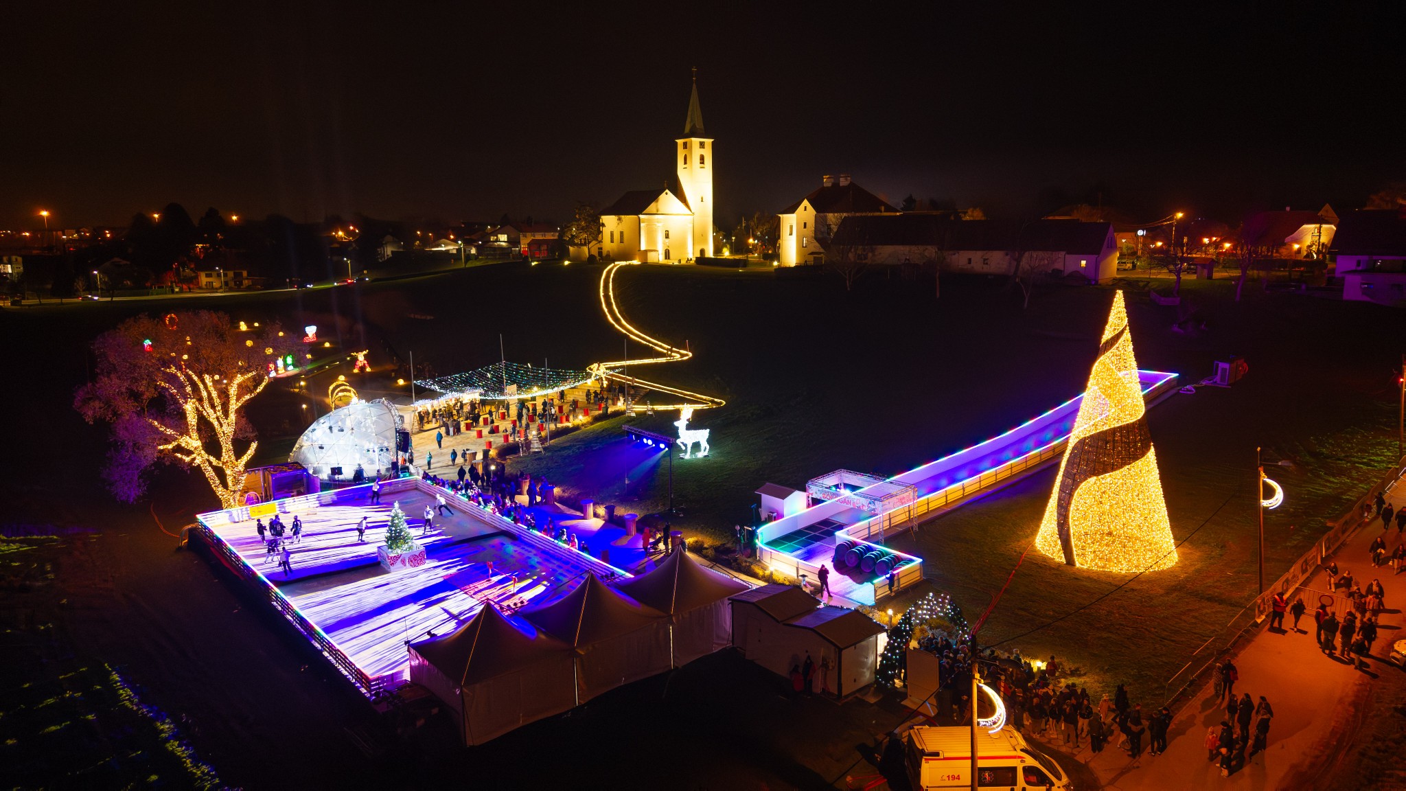 Posjetitelji su sinoć uživali i u besplatnom klizanju i spuštanju niz ledeni tobogan.