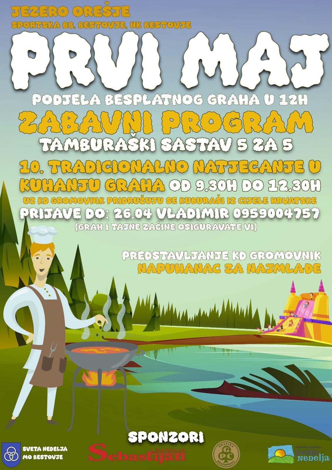 Mjesni odbor Bestovje vas poziva na tradicionalnu proslavu Prvog maja na jezeru Orešje u Bestovju. Očekuje vas ugodno druženje, odlična atmosfera i bogat program za sve generacije.