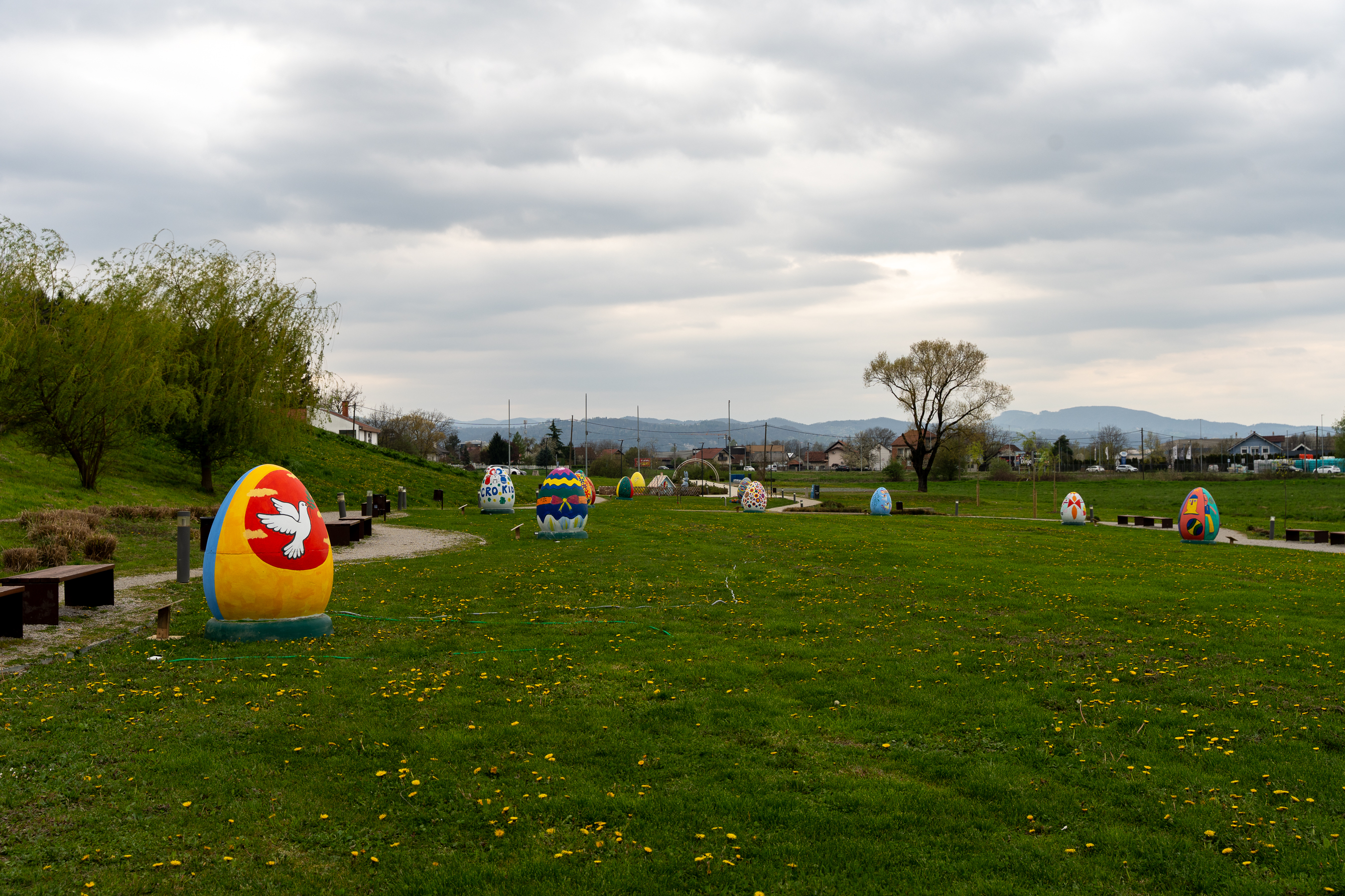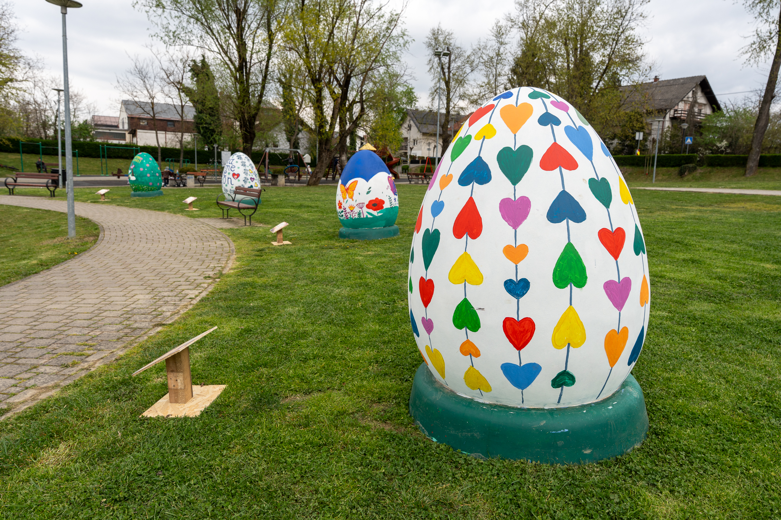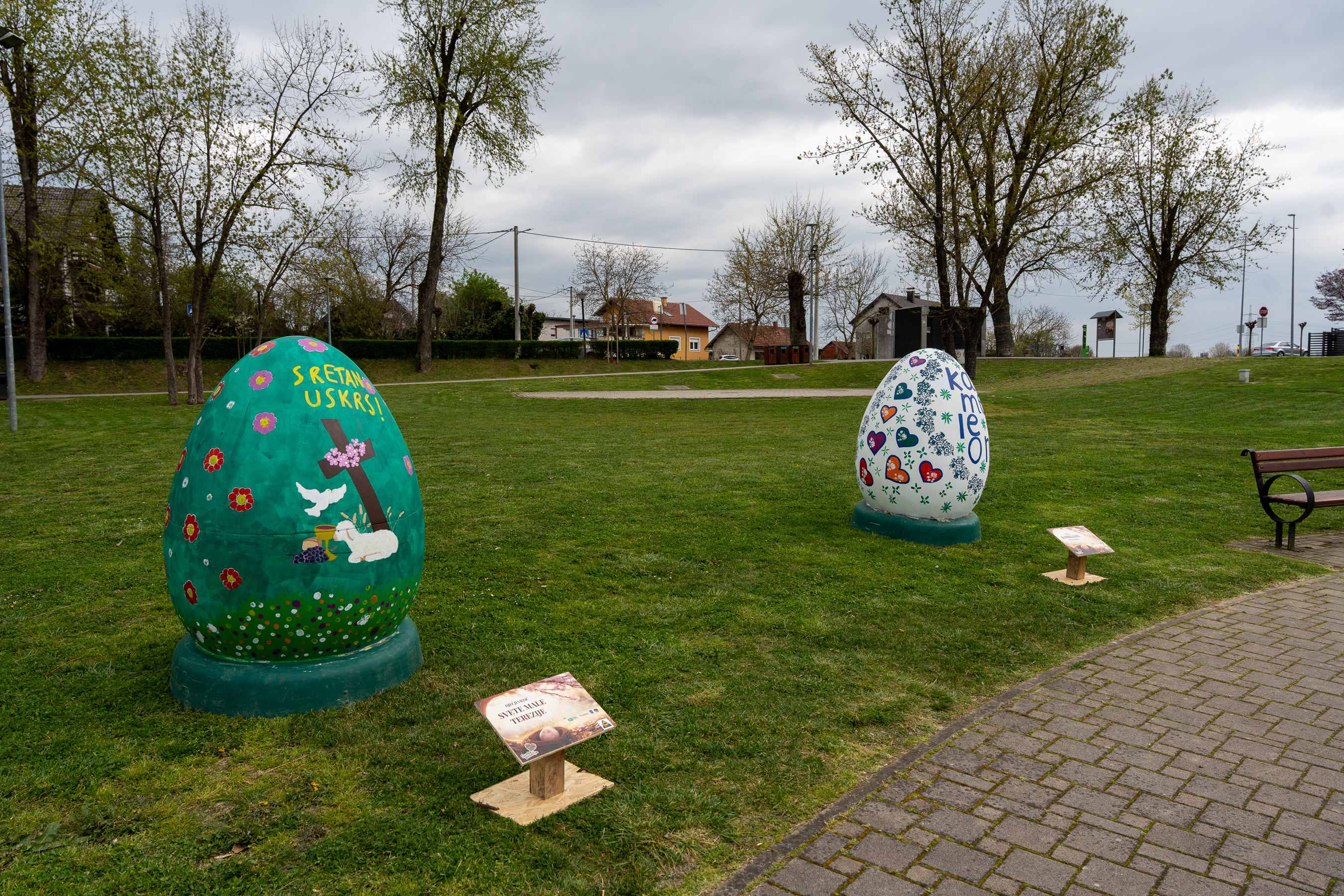 Pozivamo vas da uživate u izložbi velikih uskrsnih pisanica, koja se održava od 31. ožujka do 26. travnja 2026. na dvije lokacije: park ispod župne crkve Presvetog Trojstva i jezero / park Kipišće.